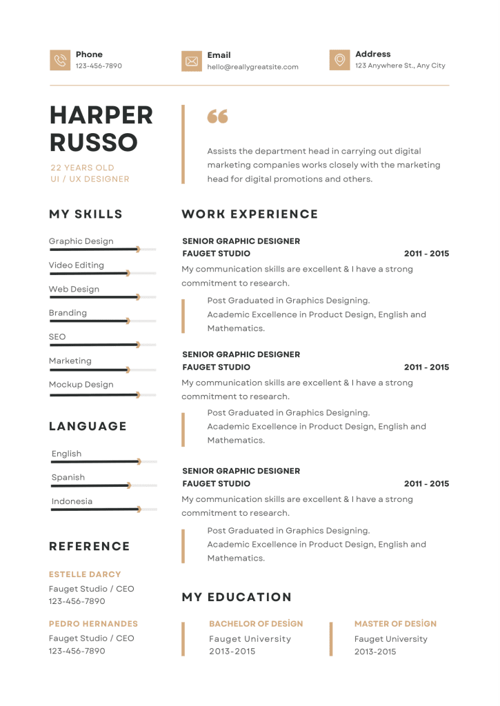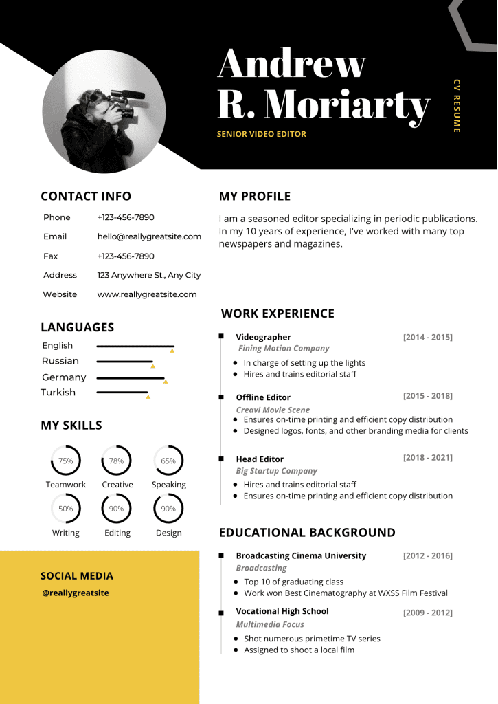 Ek olarak varsa aldığınız ödülleri ekleyebilirsiniz. Ya da ne tür bir CV hazırladığınıza bağlı olarak, akademik bir CV hazırlıyorsanız yayınlanmış eserlerinizin olduğu kısmı “Publications” başlığı altında derleyebilirsiniz. Proje bazlı çalışan biriyseniz ”Projects” kısmında çalışmalarınızdan bahsedebilir; özellikle dijital alanla ilişkili bir işte çalışıyorsanız, bildiğiniz/kullanabilirsiniz uygulamaları ”Expertise” kısmında sıralayabilirsiniz.